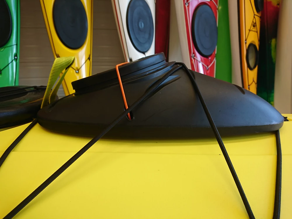 L’installation se fait avec les élastiques de pont existant sur le kayak
