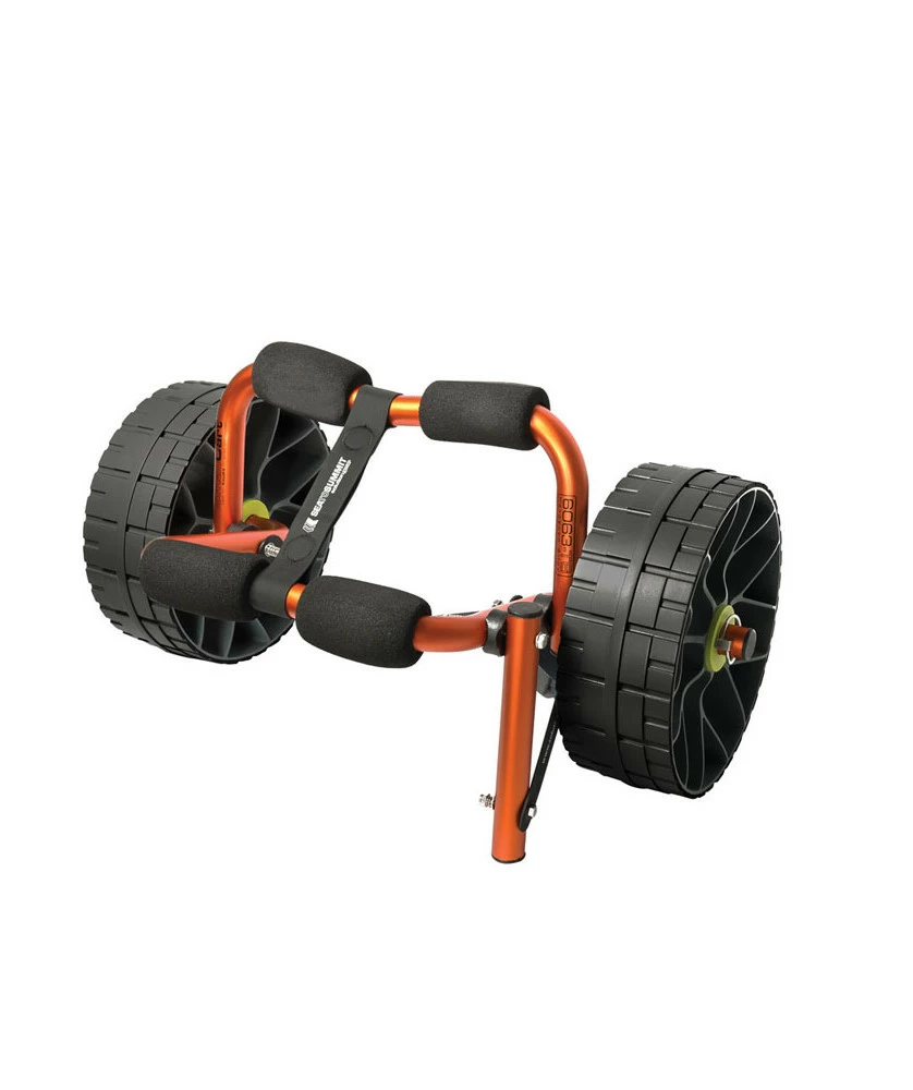 Ses roues sont amovibles ce qui permet de ranger le chariot plié dans le coffre de votre kayak.