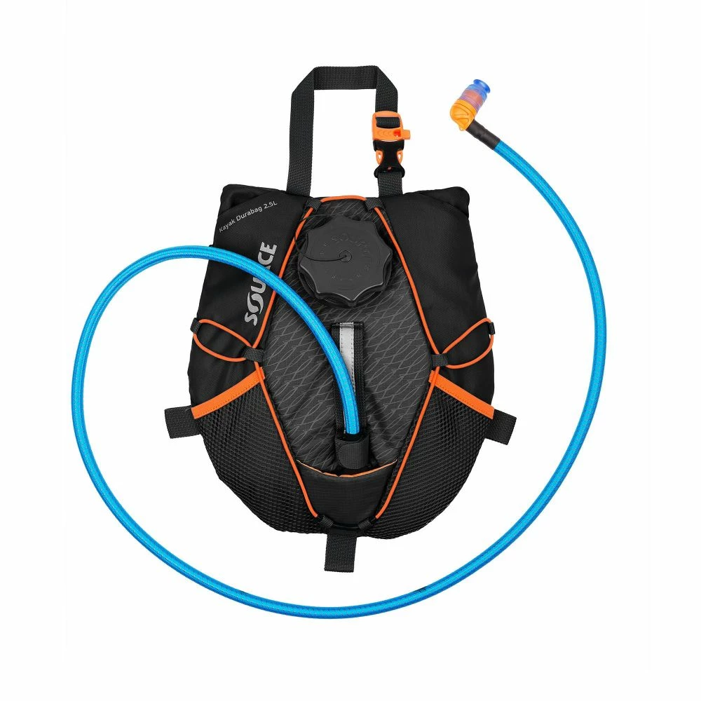 Le Durabag Kayak 2.5L SOURCE peut venir se loger facilement derrière les cale-pieds. Grace à son tube renforcé anti UV de 140cm, vous placez où bon vous semble l’emboût du tuyau.