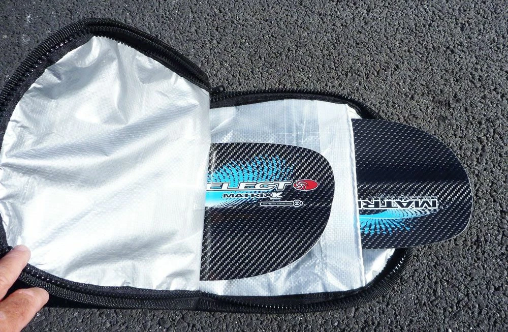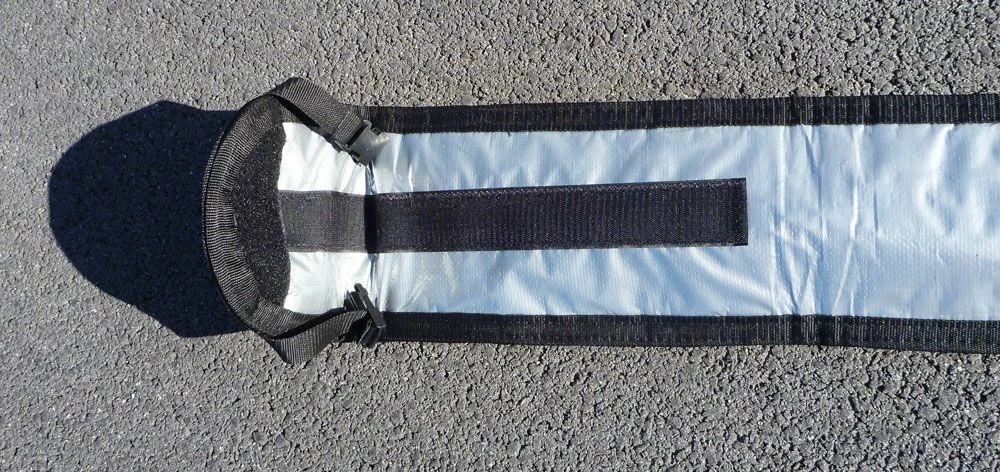 Tissu matelassé extérieur avec paroi de séparation des deux parties de la pagaie. Un rabat avec velcro et boucle de serrage permet d’adapter la housse à la longueur de votre pagaie.