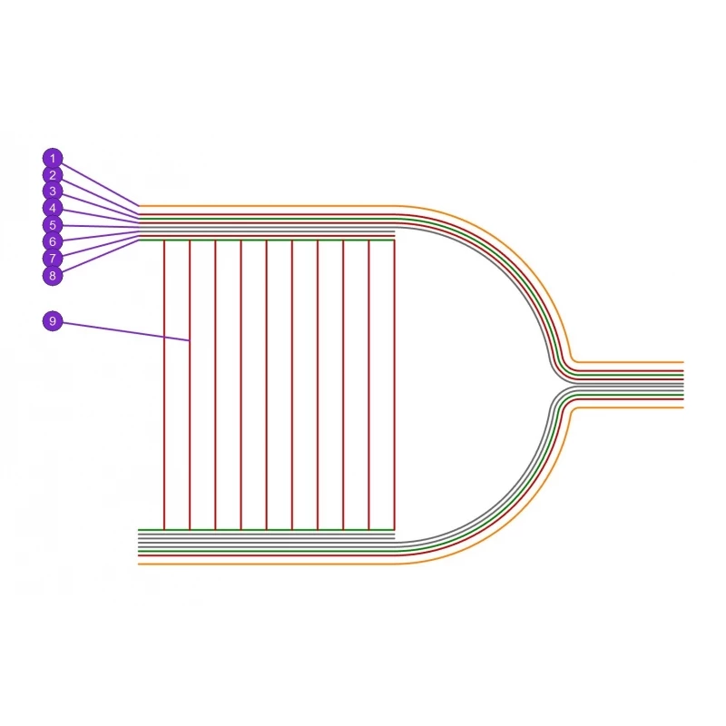 * Textile Polyester de 1100 dtx « DROPSTITCH » (double-étoffe) – Tissus constitué de deux trames séparées par un réseau de fils reliant les deux parois textiles entre elles, à une distance régulière de 10 cm.