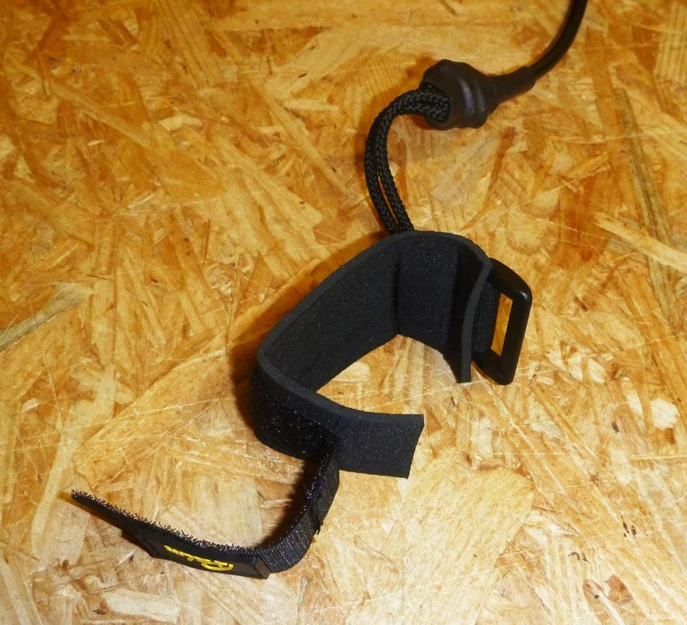 Leash de pagaie « accordéon », qui ne vous gênera pas en pagayage. le système de sangle velcro permet une installation rapide et efficace du leash sur la pagaie.