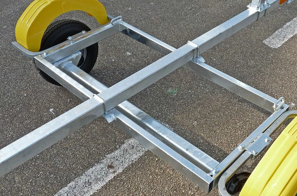 Remorque spécialement conçue pour le transport de 2 kayaks.