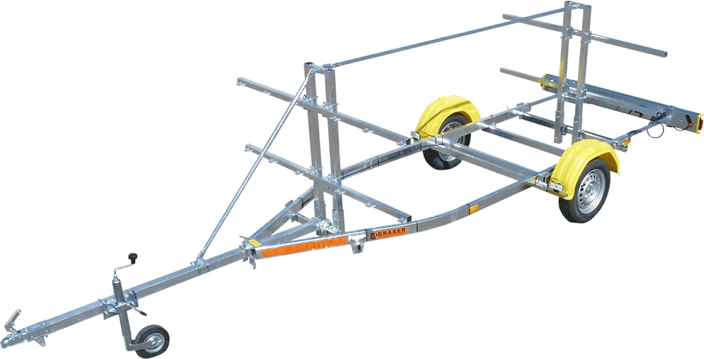 Remorque spécialement conçue pour les lognues distances pour le transport de 4 kayaks.