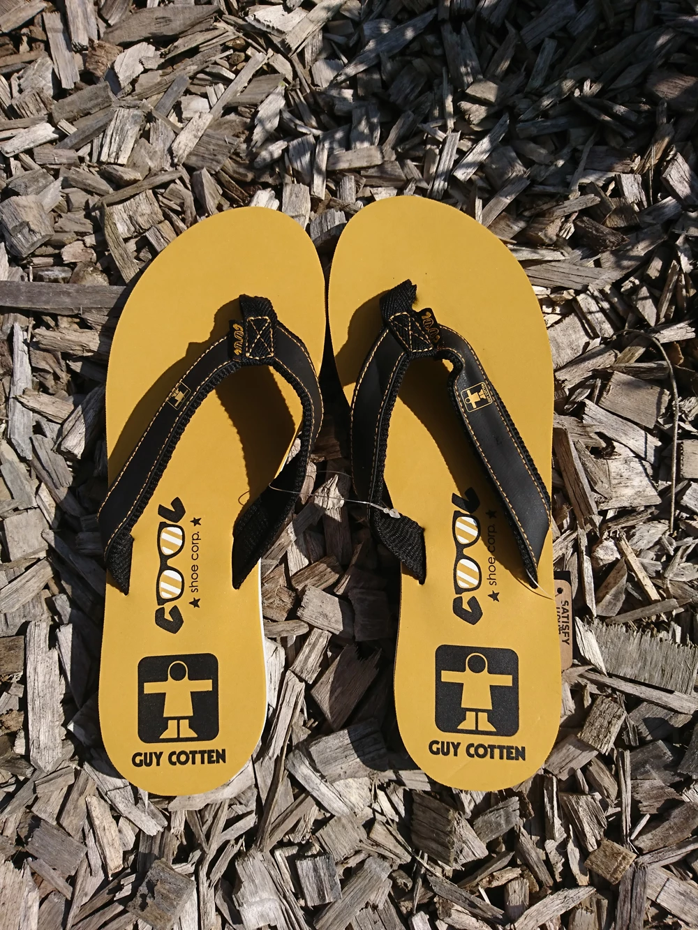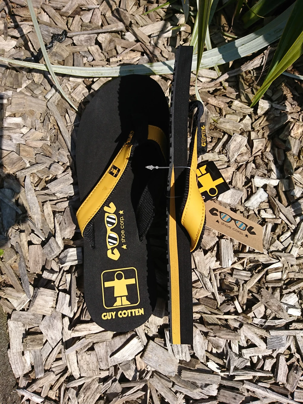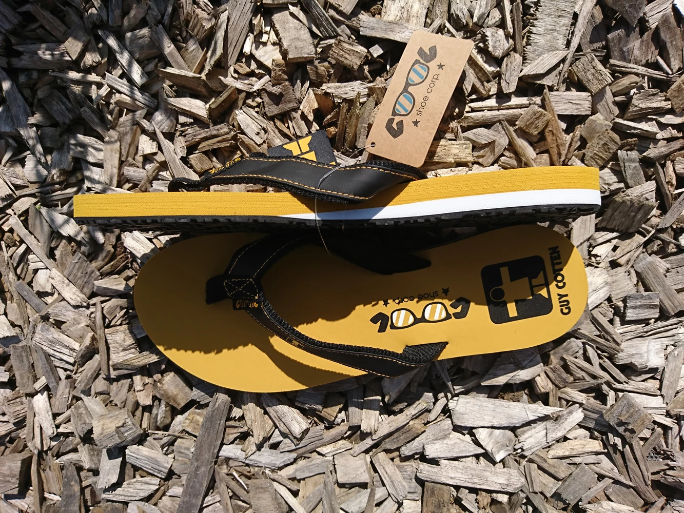 – Dessus semelle jaune avec lanière noire.